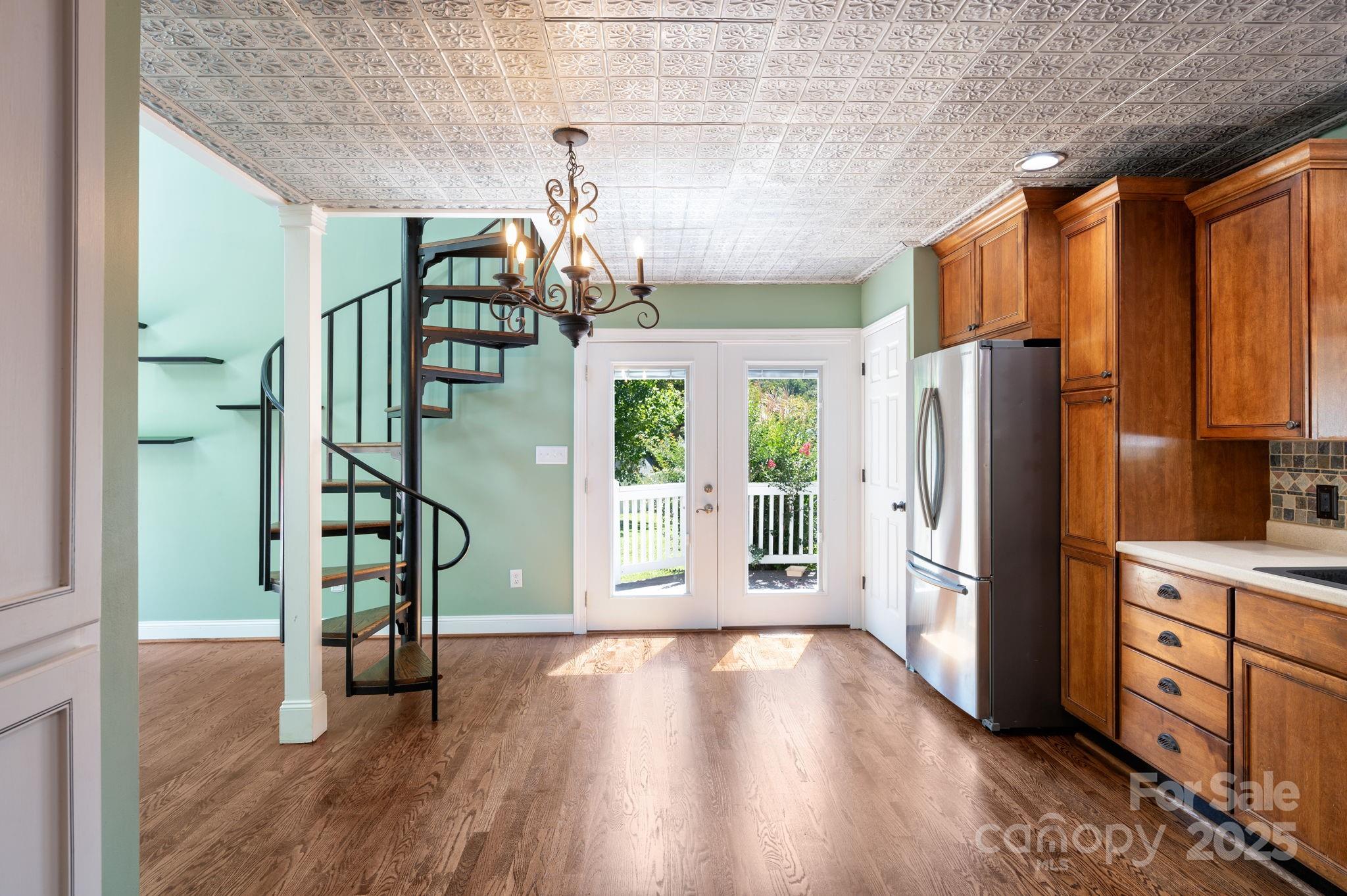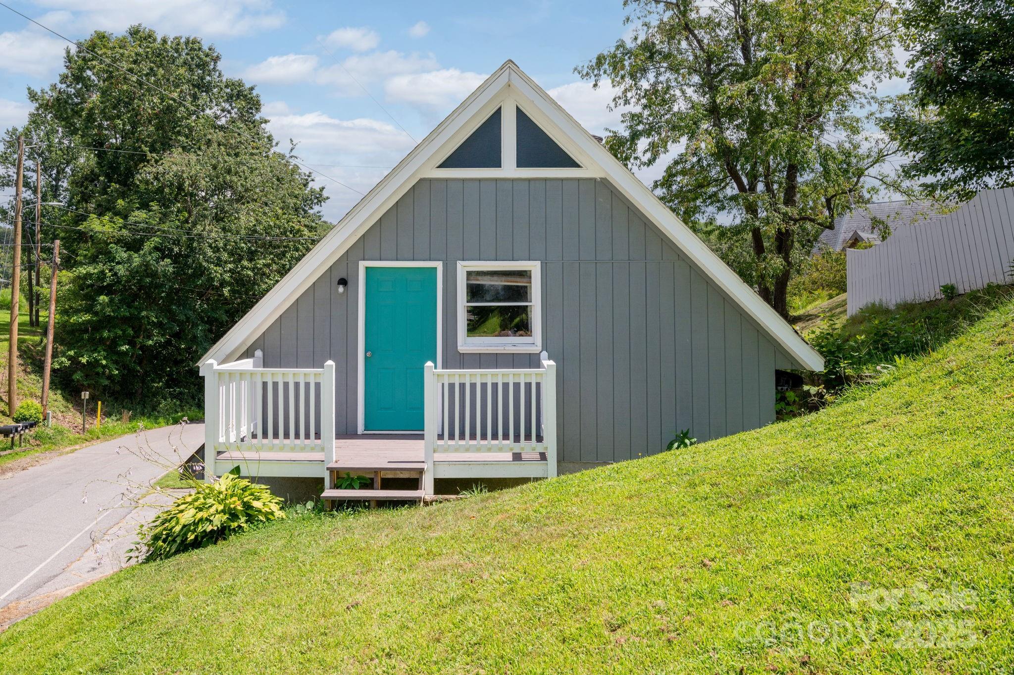 Gleaming new solid Oak flooring just added! Just minutes from Downtown Asheville and right outside city limits, 207 Jonestown Rd offers an opportunity to own a unique property with incredible charm and potential. Features include an open floor plan, French Broad River views, stunning hardwood floors repurposed from the Asheville High School gymnasium, and a striking spiral staircase salvaged from Valley Springs Middle School-adding character and history to the space. The main-level primary bedroom boasts an ensuite bathroom and a spacious walk-in closet. Upstairs features a second bedroom and bath, plus a versatile loft-ideal as an office, studio, or secondary living area. Situated on over half an acre, the property features a detached unfinished A-Frame building, partially fenced yard and a wraparound deck perfect for outdoor entertaining, gardening, or simply relaxing in your private retreat. Don't miss this rare opportunity to own a property with character, space, and potential-just a short drive to the heart of Asheville.