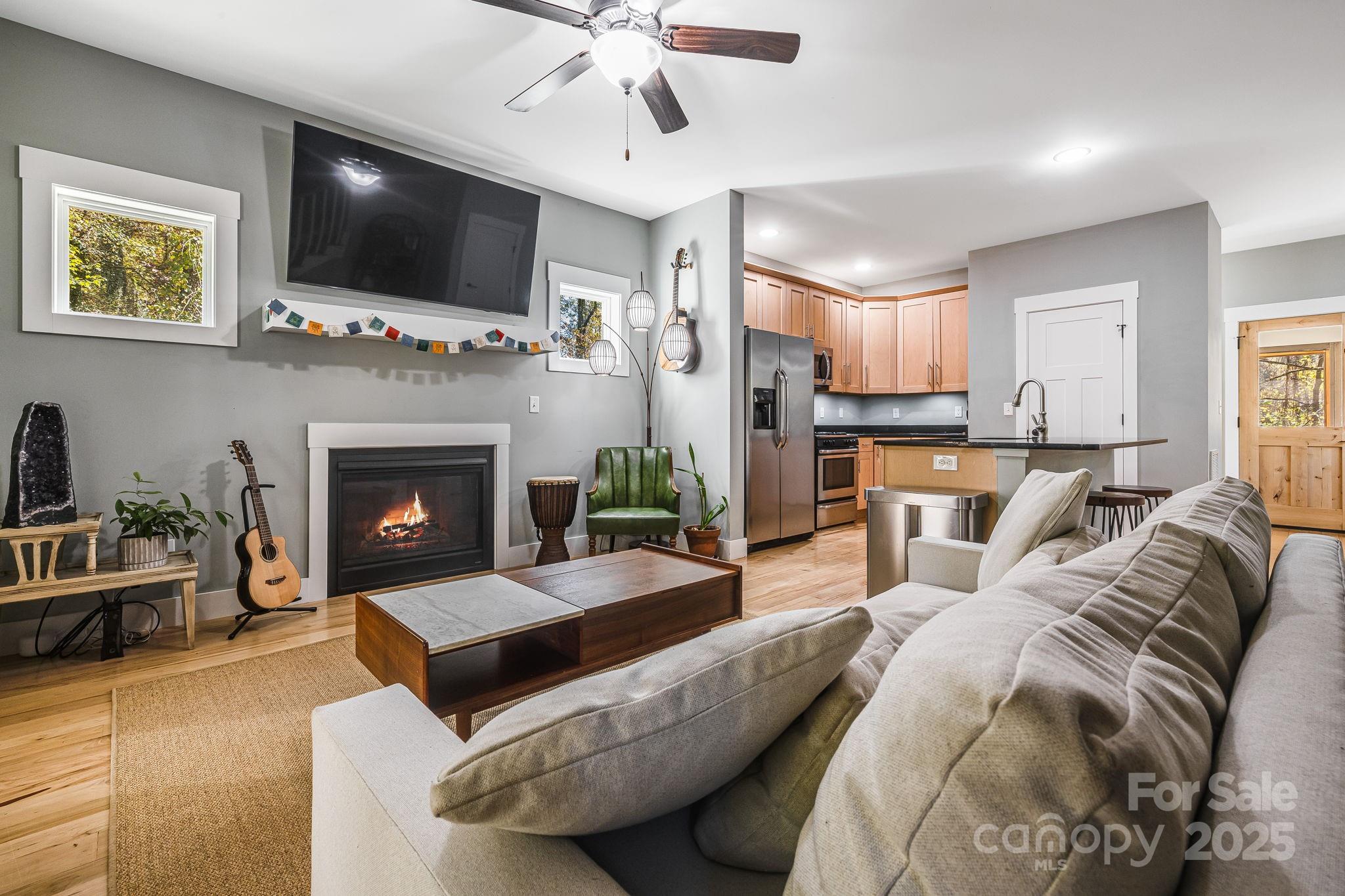 Welcome to 95 Old Haw Creek Road - a thoughtfully designed, Silver-Certified GreenBuilt home that offers peace, privacy, and modern efficiency in one of Asheville's most desirable neighborhoods. Set on a quiet, dead-end street beside a gentle creek, this home feels worlds away, yet is only minutes from downtown, Whole Foods, and the Blue Ridge Parkway. Inside, natural light fills the open main level, where maple floors, granite countertops, and a gas range create a warm and functional flow between the kitchen, dining, and living areas. The cozy fireplace and surrounding greenery make it feel like a retreat in every season. Upstairs, the spacious primary suite includes a tiled shower and double vanity, with two additional bedrooms, generous storage, and a large, unfinished attic that offers endless possibilities. Outside, the fenced backyard is perfect for gardening, play, or entertaining - complete with raised beds, fruit trees, berry bushes, and a fire pit. Relax on the screened porch, listen to the creek, or explore the nearby walking trails and overlooks. With sustainable construction, low energy costs, and the ability to add future ADUs, this home balances mindful living with lasting value - all within minutes of everything Asheville has to offer.