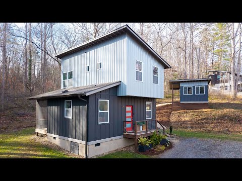 Contemporary cottage with ADU! Tucked away off Lower Grassy Branch Road, the large lot borders National Park Service land and the Blue Ridge Parkway, providing unparalleled privacy. While winter months reveal quiet mountain views, the lush summer foliage creates a "treehouse living" ambiance. The main home features a spacious, open floor plan with LVP flooring, abundant natural light, and recessed lighting throughout. Enjoy cooking in the eat-in kitchen with leathered granite countertops, dedicated pantry cabinet, sleek stainless steel hood, and an inviting center island perfect for casual seating. The bright living area unfolds effortlessly into the intimate dining space, which grants direct access to the tranquil, private screened-in porch. Second floor features two bedrooms, a large, full bathroom, and a practical laundry closet. The separate, finished accessory dwelling unit (ADU) has heating, cooling, electric, and covered porch-perfect for a private office, art studio, yoga or play space. Outdoor amenities include a built-in firepit area with a stone and gravel patio, multiple raised garden beds for gardening enthusiasts, mature landscaping, an expansive privacy fence, and ample parking.